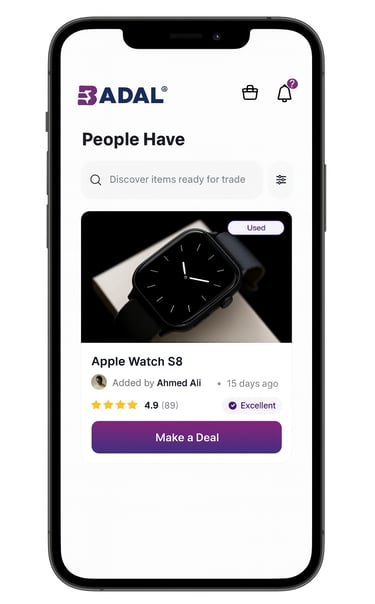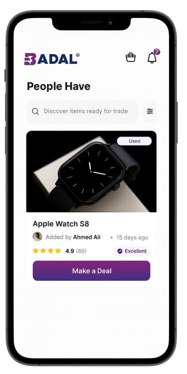 Imagine no longer having to spend money on the things you need. instead, trade items you already have for someone else’s, and let Badal handle the entire process in just a few clicks. It’s hassle-free, seamless, and ensures guaranteed quality!